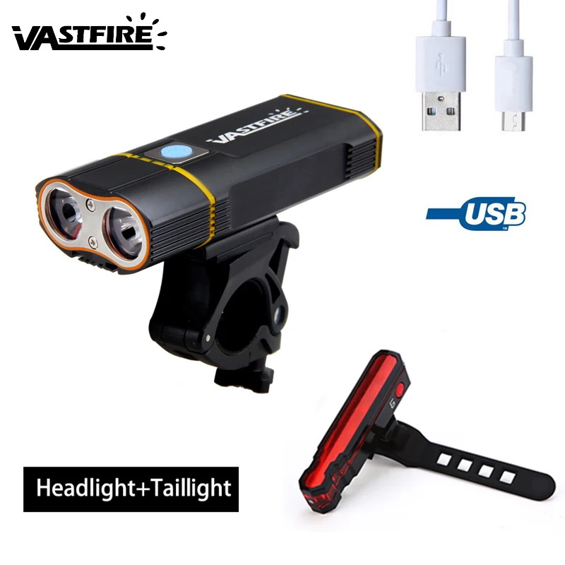 USB Rechargeable 2XL2LED Bike Lights 6000 LM Front Bicycle Handlebar Headlight Cycling Torch Camping Flashlight Notice:We send the package according to the type you choose in the picture shown. USB Bike Light Description The Bike Light puts self-contained 6000-lumen max output at the ready. the exclusive Dual Distance Beam System make the kf2 effective on road or trail up to 170m. Include 2x18650 rechargeables batteries to power; all guarded by a rugged bar-mounted housing. Features ·Utilizes two XM-L2 T6 neutral white LEDs, ·max 6000-lumen output ·DUAL DISTANCE BEAM SYSTEM ·4 brightness levels plus warning mode ·Digitally regulated output - maintains constant brightness ·Quick attach and detach handlebar mount sized for ·22mm-35mm handlebars ·Easy, secure adjustment of the light's direction ·Made of aluminum alloy Smart Li-ion battery charging circuit, Micro-USB adaptable charging port Built-in 2x 18650 rechargeable6000mAhbattery Size:100mm x 30mm Bike Light +Taillight(Optional) Specification: Item:USB Bike Laser Taillight Material: High quality ABS LED: 5 pieces LEDs LD: 1 piece LD (laser) Brightness: 150 lumen Size: 95*28*23mm Battery: Built-in 3.7V 500mAh Li battery Working hours: With Leser and LED function working together, constant light for about 2.5 hours, quick flash 5 hours, slow flash,7 hours Features: With a quick release silicone strap, fits for most bike handlebars, easy to install and remove without any tool IP55 Waterproof rate can fit for different kinds of environment, no worry about rainy days, lengthen it’s working life USB rechargeable can be convenient and more environment friendly. LD & Leser Function, with laser line, makes you and your bicycle be protected in the center of the leser line. With leser line and leser point function, can use as a leser pen, play with your pets! Safety laser light for camping ,cycling, Sporting etc. Package included: 1 x Bicycle Taillight 1 x USB Cable 1 xSilicone Bracket 1 xTaillight(Optional)