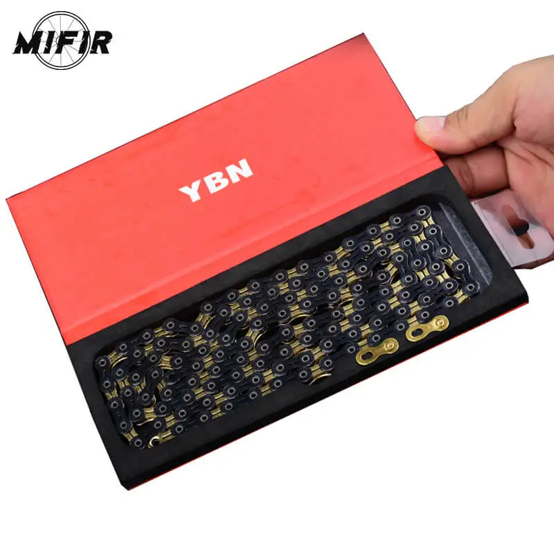 Brand: Taiwan /YBN Model: 10 speed SLA-110-GB Specification: 1/2 "*11/128", axis length 5.9MM 11 speed Length: 116 Links (including magic buckles) Color: color drills Compatibility: compatible SHIMANO/Campanolo/SRAM 11 speed system Application: Mountain Bike / road car / small wheel folding car Actual weight: about 248g Packing: the original iron box, with a special magic button